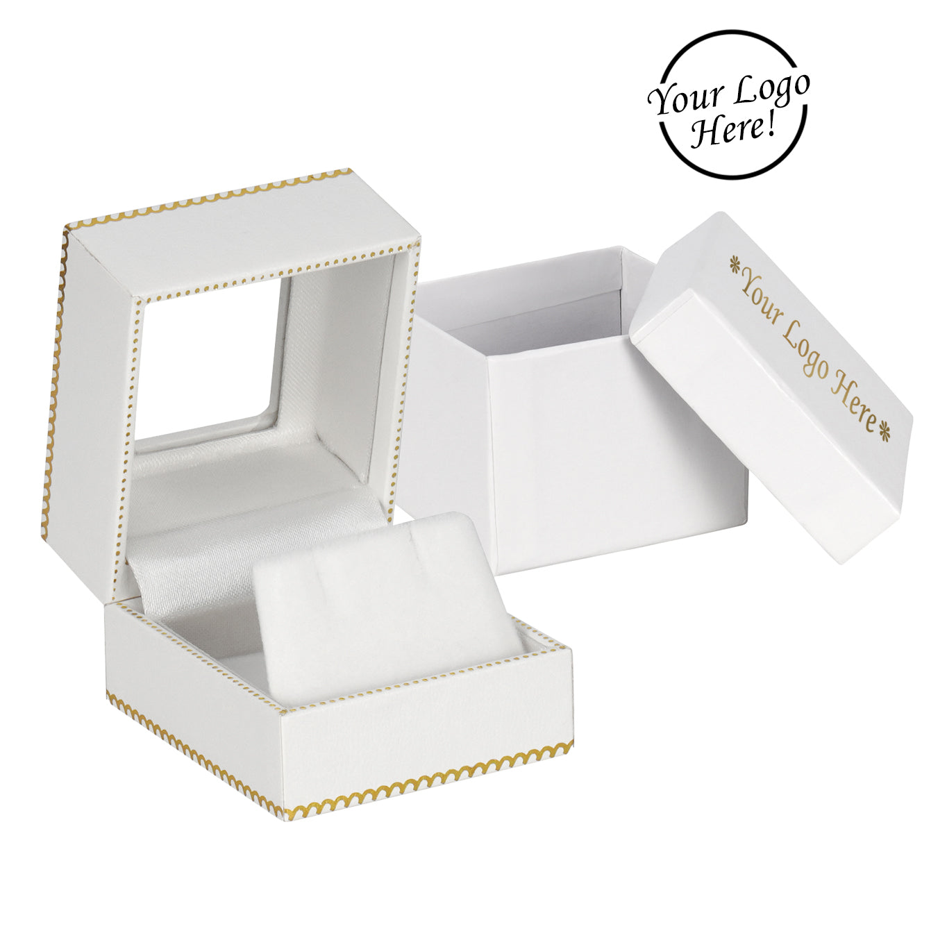 • Discover our Window Leatherette Earring Box, showcasing luxurious textured leatherette adorned with an elegant gold pattern—an exquisite display for a variety of earring styles. Engineered to accommodate studs, danglers, and more, our Classic Leatherette Earring Box is meticulously crafted with premium materials, including a soft velour insert, ensuring both secure storage and a convenient, compact solution for retailers.