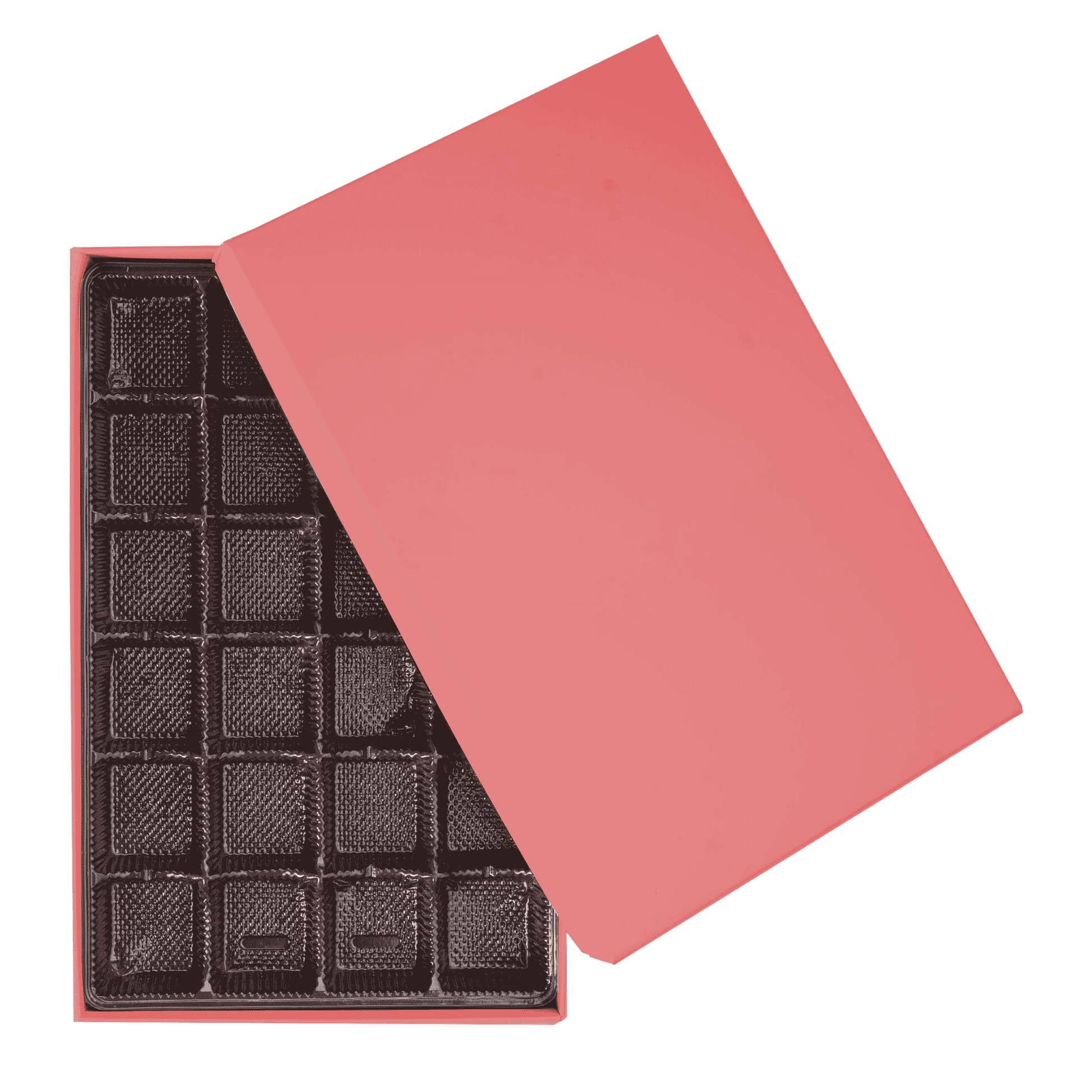 - Elevate your chocolate gifting experience with our 2-piece cardboard chocolate box. Designed for convenience and elegance, this box comes flat-packed for easy storage and quick assembly—simply fold and tuck, and your beautiful chocolate box is ready in seconds. Available in a variety of tints to match any occasion or brand aesthetic, you can choose to include a chocolate box insert or not. Ideal for retailers, chocolatiers, and DIY enthusiasts, this chocolate box combines practicality with style.