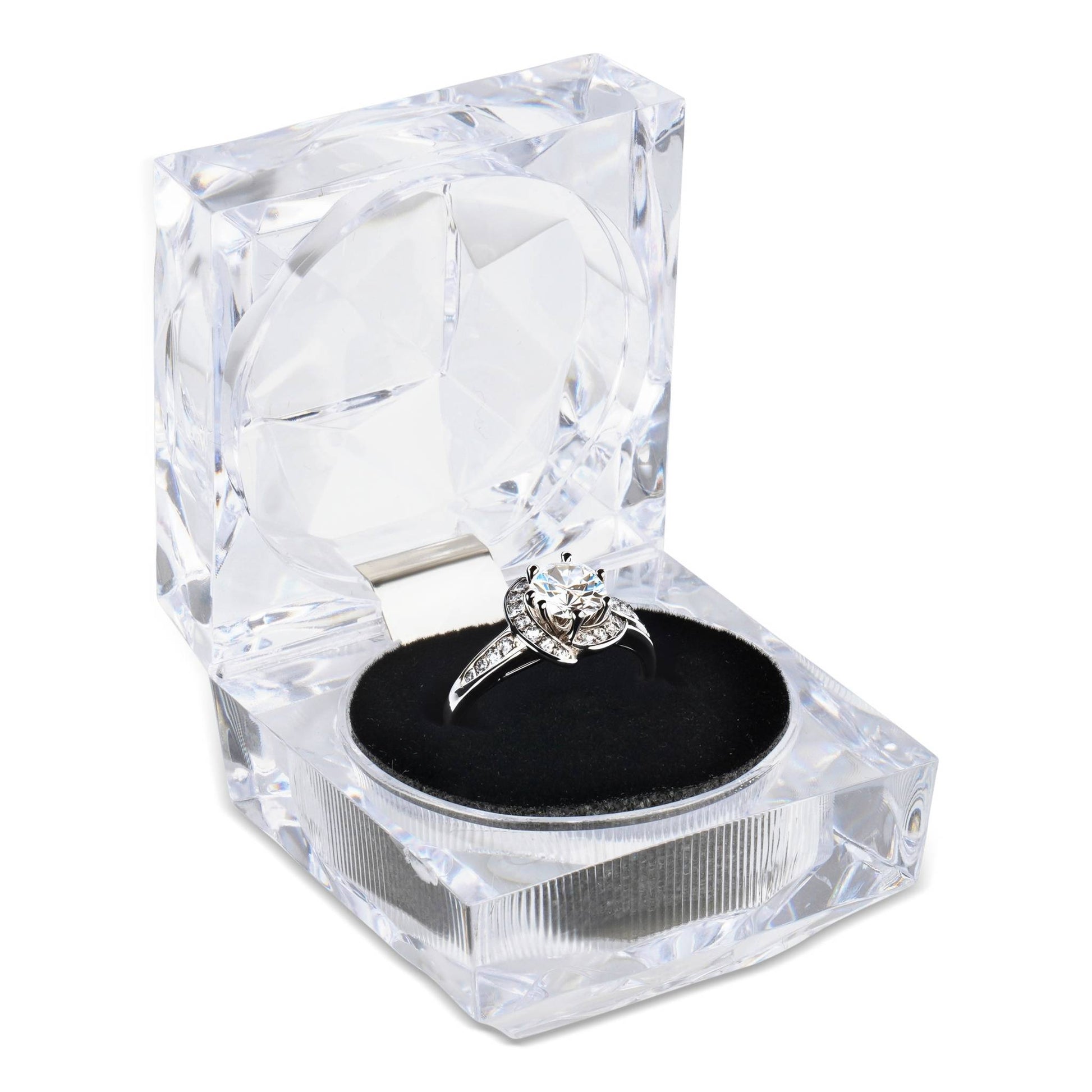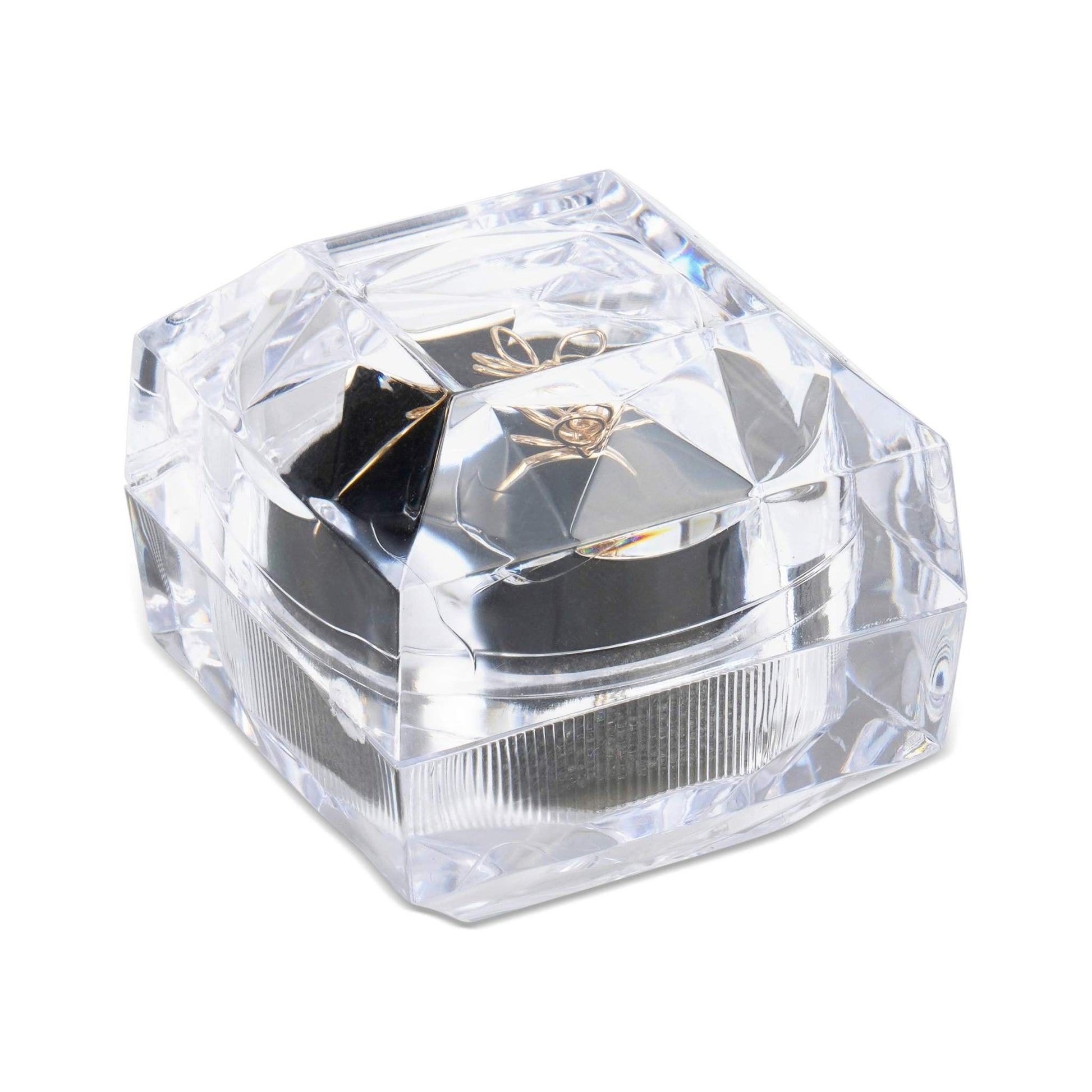 Highlight the elegance of your rings with our Sparkling Crystal Deluxe Ring Box featuring a soft velour insert. This sleek, transparent design showcases your ring beautifully from every angle while ensuring it remains secure and pristine. Ideal for both personal storage and attractive gift presentations, this box adds sophistication to any jewelry collection.